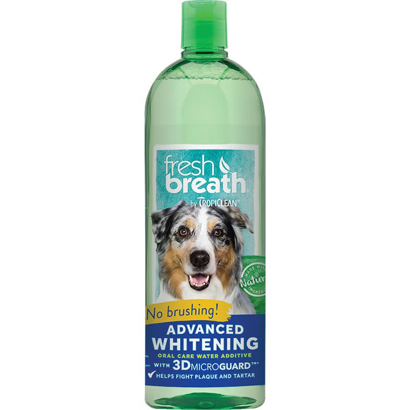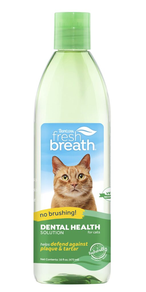 5. Water supplements. TropiClean Fresh Breath Dental Health Solution for dogs and cats, help fighting tartar by simply drinking from their water bowl.